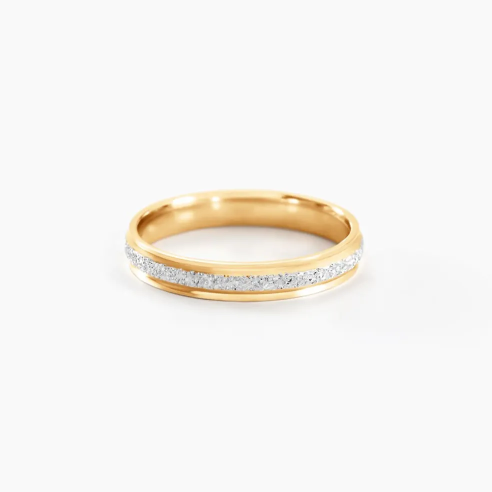 Alliance Or Bicolore Jaune Et Blanc Rhodie 375/1000 Fantaisie Sable 3mm