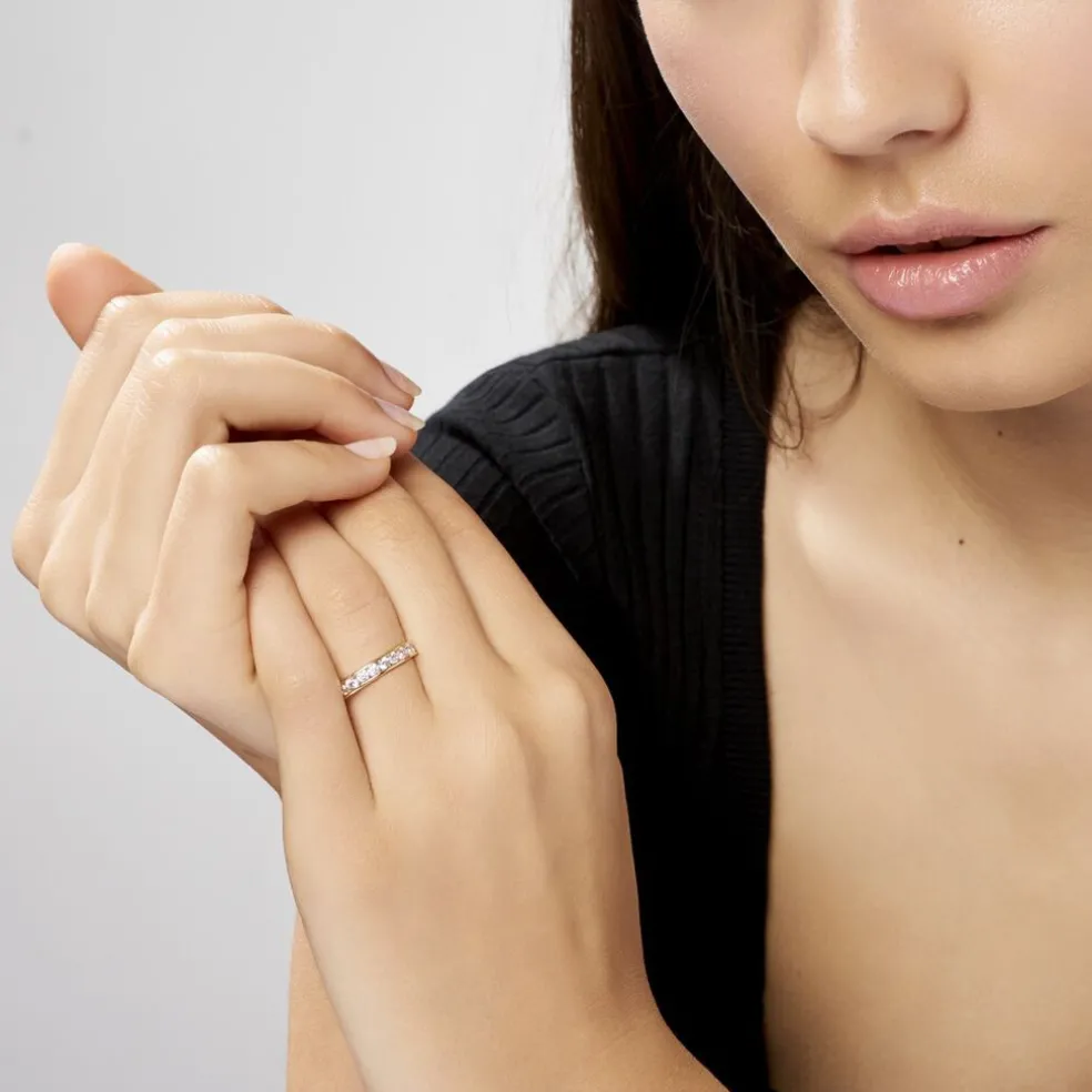 Demi-alliance Or Jaune 375/1000 Oxydes De Zirconium Ronds Serti Rail 3 Mm