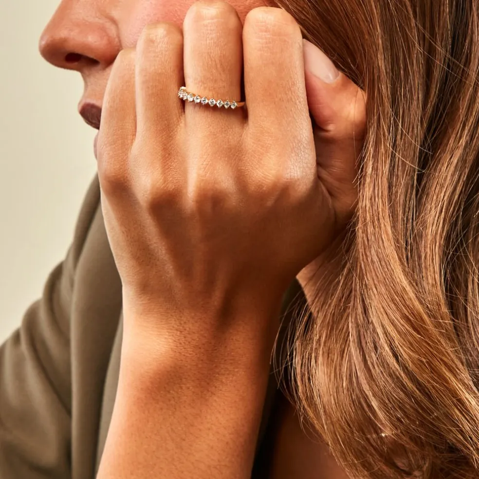 Demi-Alliance Or Jaune 750/1000 Diamants Synthetiques Taille Ronde 0,5Cts Sertis Griffes