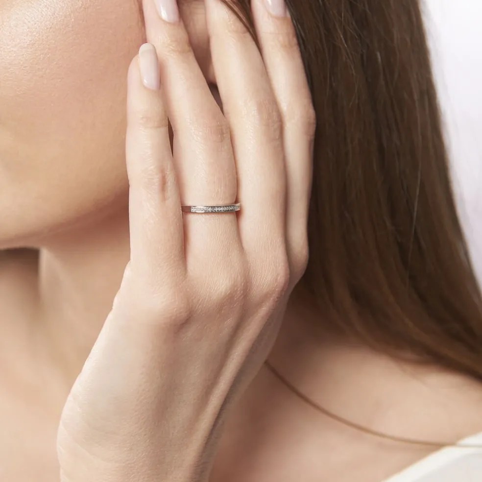 Alliance Or Blanc 375/1000 Diamants Liseret Demi Tour