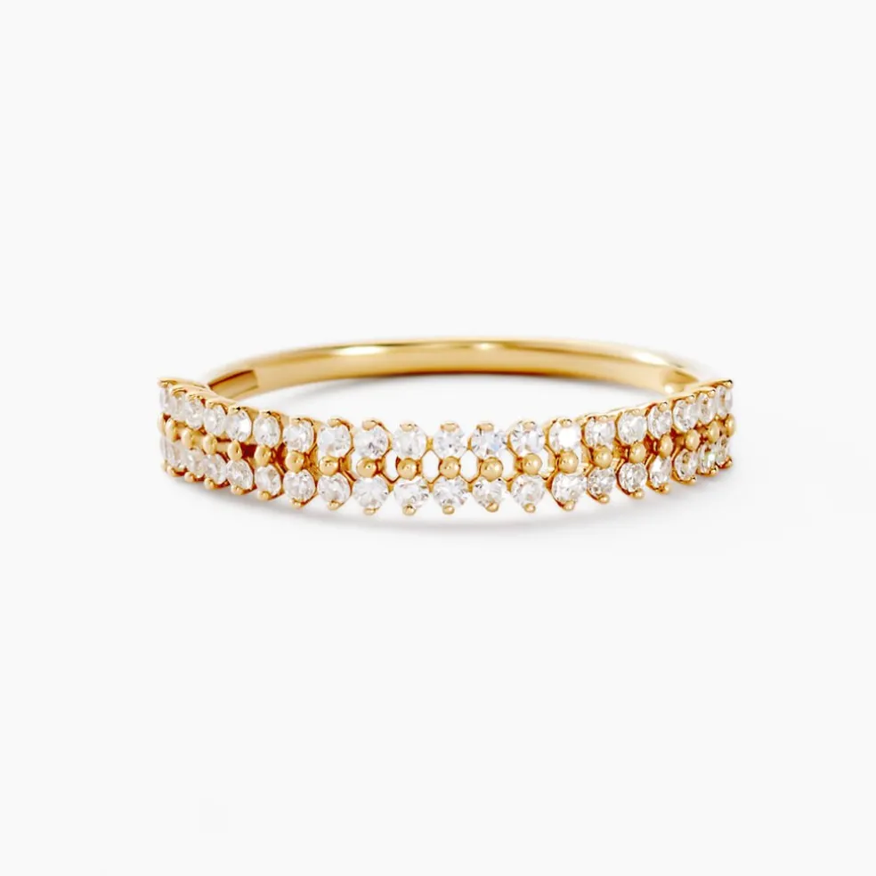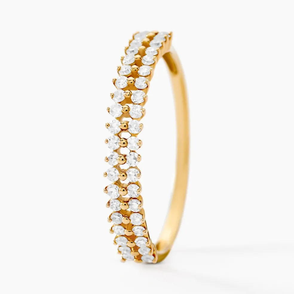 Demi Alliance Or Jaune 375/1000 Double Rangs Diamants Synthetiques 0.30cts Sertis Griffes