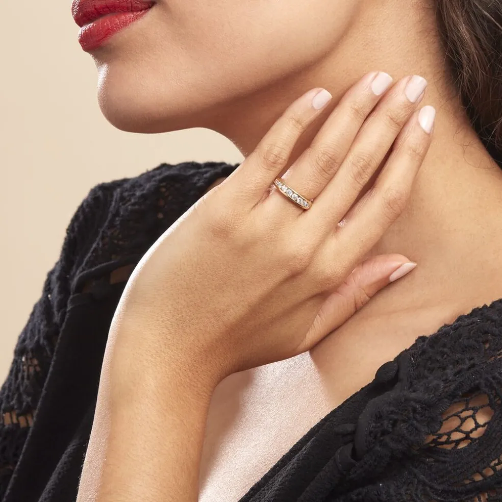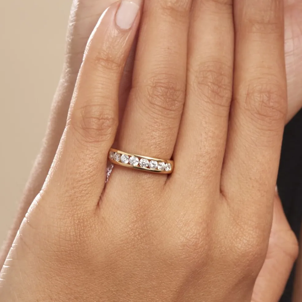 Demi-alliance Or Jaune 750/1000 Diamants 0.58cts Sertis Rail