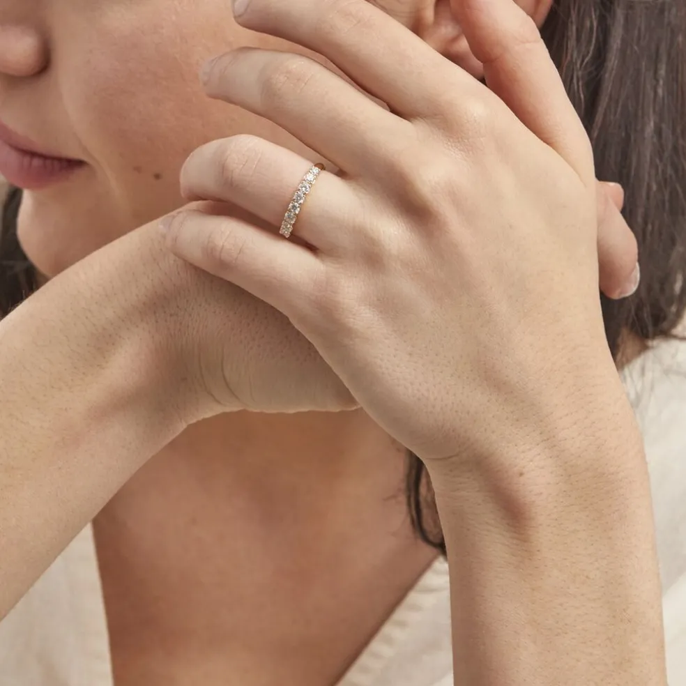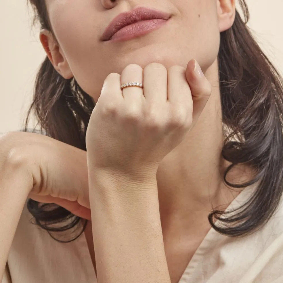 Demi-alliance Or Jaune 750/1000 Diamants 0.576cts Sertis Griffes