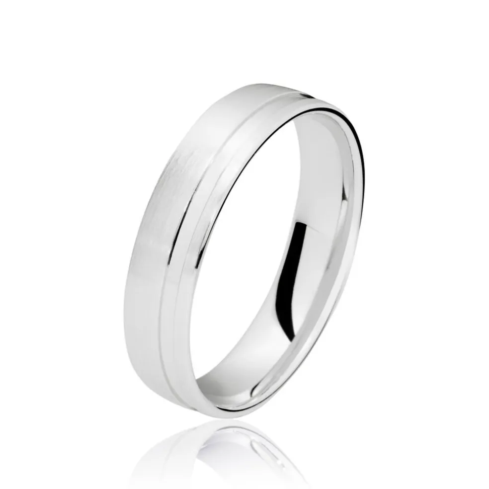 Alliance Or Blanc 750/1000 Fantaisie Ruban Poli/brosse 5mm