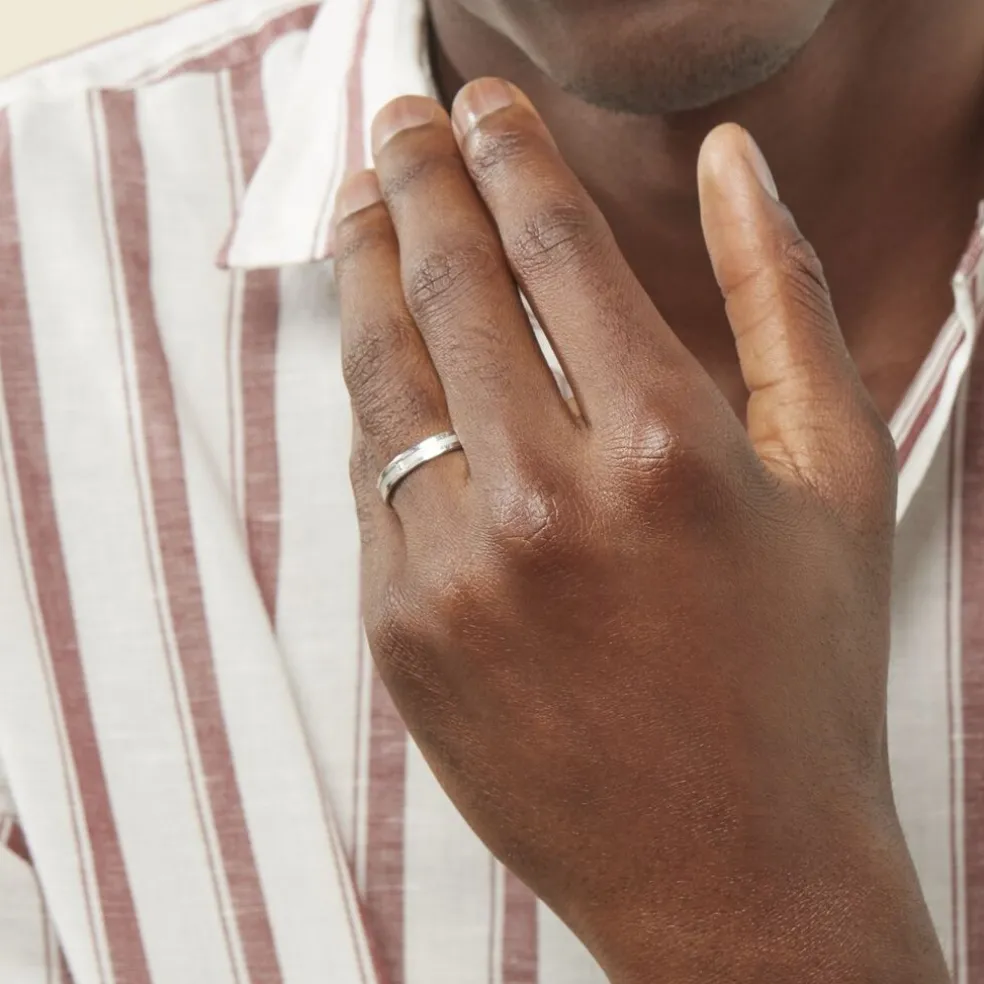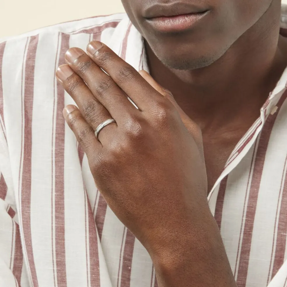 Alliance Or Blanc 375/1000 Ruban Sable Avec 1 Diamant Serti Grain 4mm