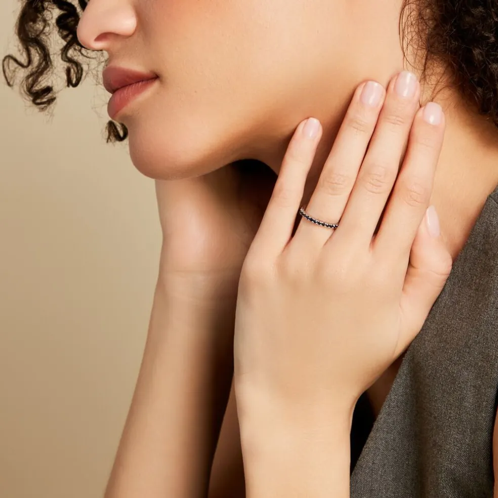 Alliance Or Blanc 750/1000 Saphir Bleu Serti 4 Griffes