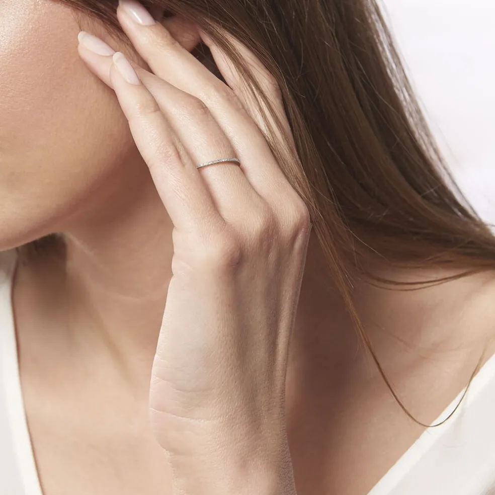 Alliance Or Blanc 375/1000 Diamants 0.195cts Tour Complet Micro Setting