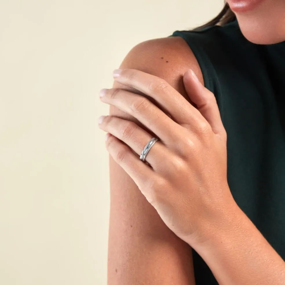Alliance Or Blanc 375/1000 Brossée Et Multi Ciselée 4mm