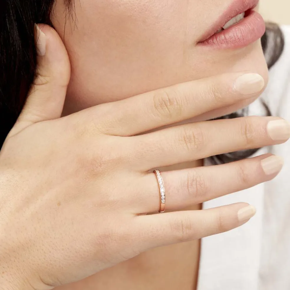 Demi-alliance Or Rose 375/1000 Diamants 0.20cts Sertis Grain