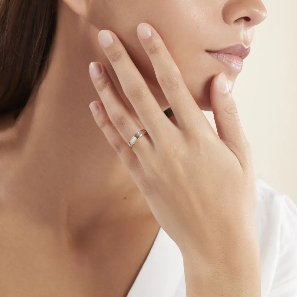 Alliance Or Bicolore 750/1000 Blanc Et Jaune Romaine Polie 4mm