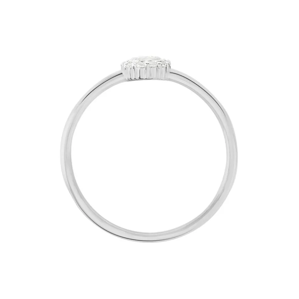 Bague Or Blanc 375/1000 Effet Perle Diamant Central Entourage Diamants 0.117cts
