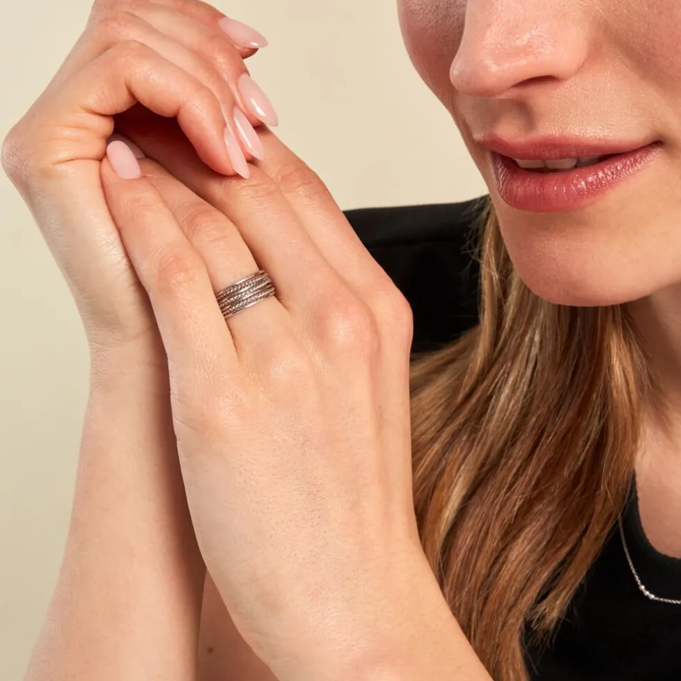 Bague Argent Blanc 925/1000 Multi Anneaux