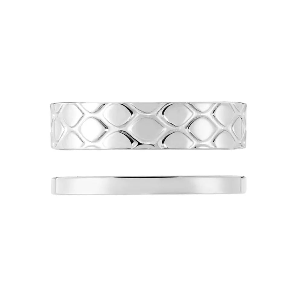 Bague Ajustable Acier Blanc 2 Anneaux Larges Ajoures Lisse Et Reptile
