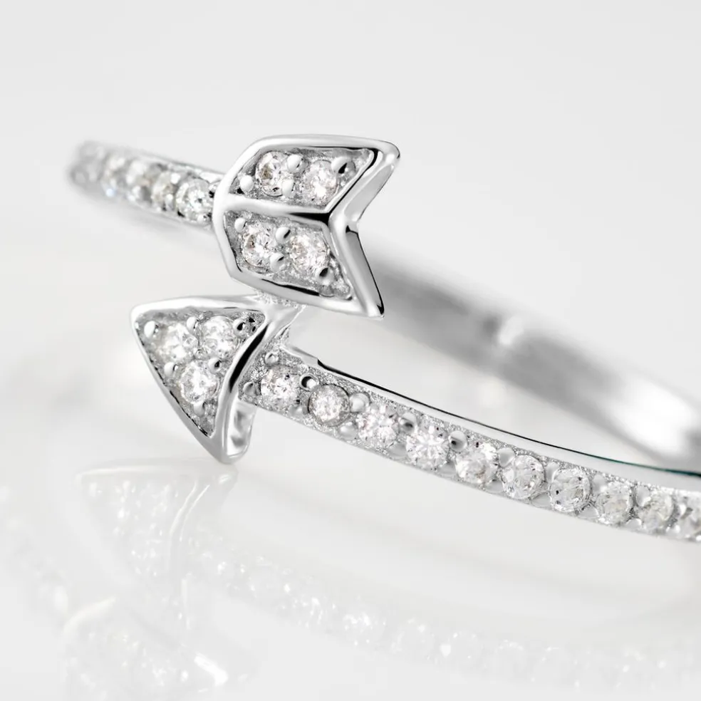 Bague Argent Blanc 925/1000 Flèche Pavage Oxydes De Zirconium