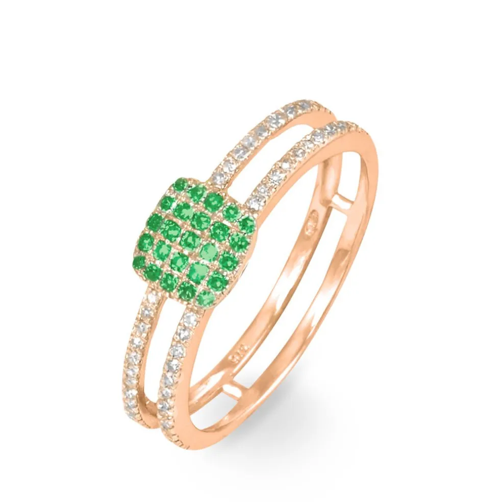 Bague Or Rose 375/1000 Coussin Emeraudes