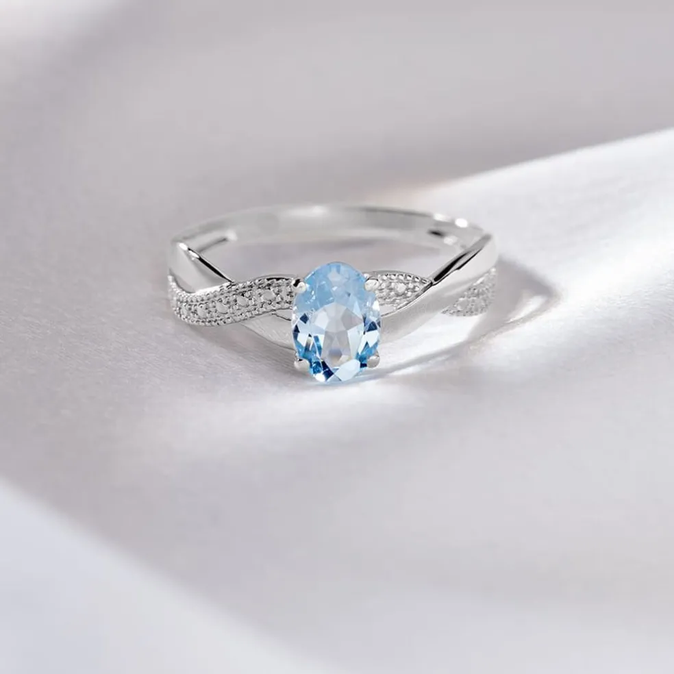 Bague Or Blanc 375/1000 Croisee Topaze Ovale Serti Griffes