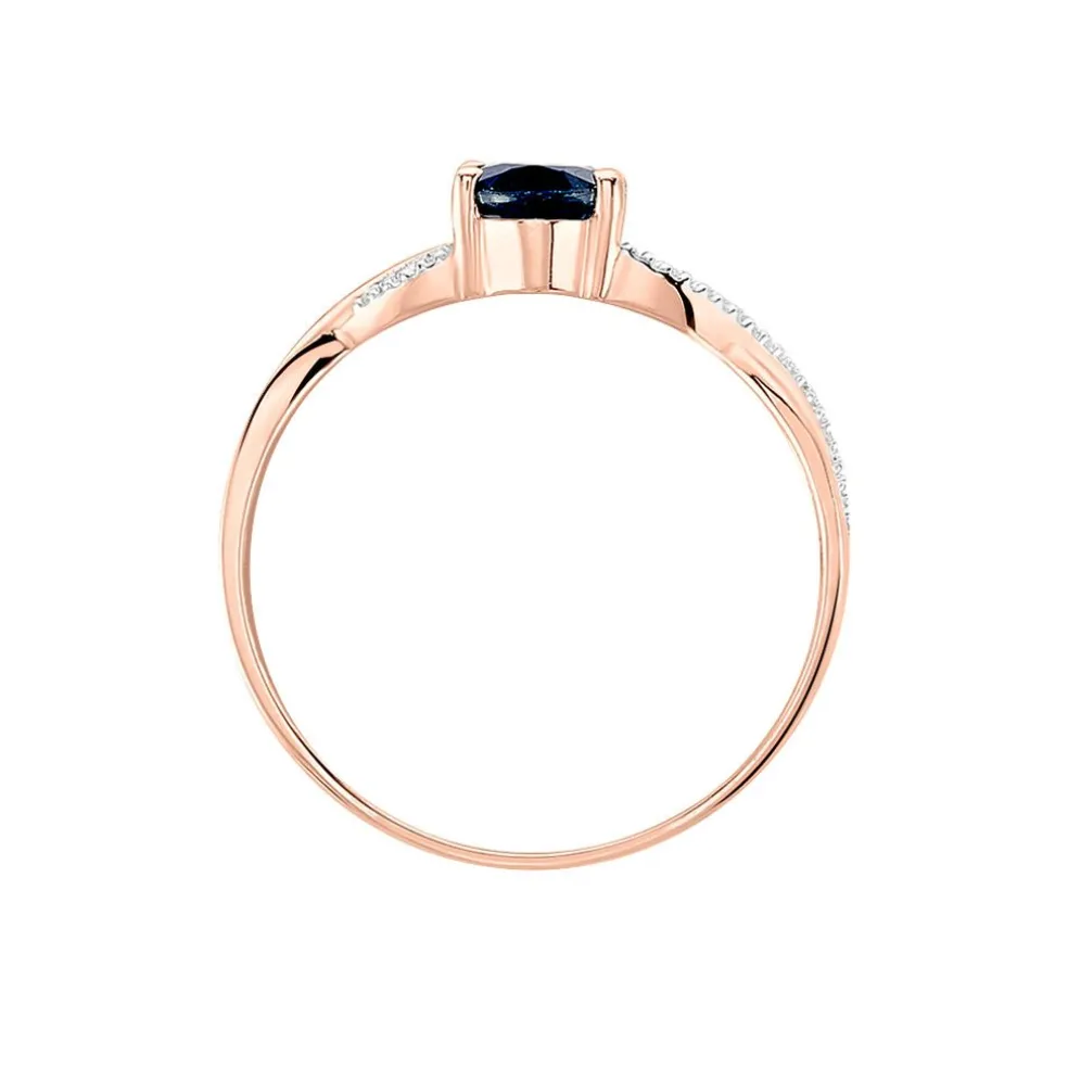 Bague Or Rose 375/1000 Croisee Saphir Oval Serti Griffes