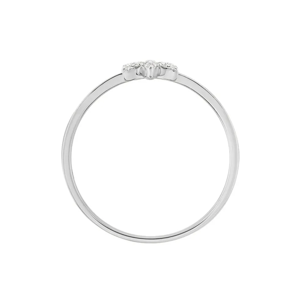 Bague Or Blanc 375/1000 Motif Fleur Pavage Diamants