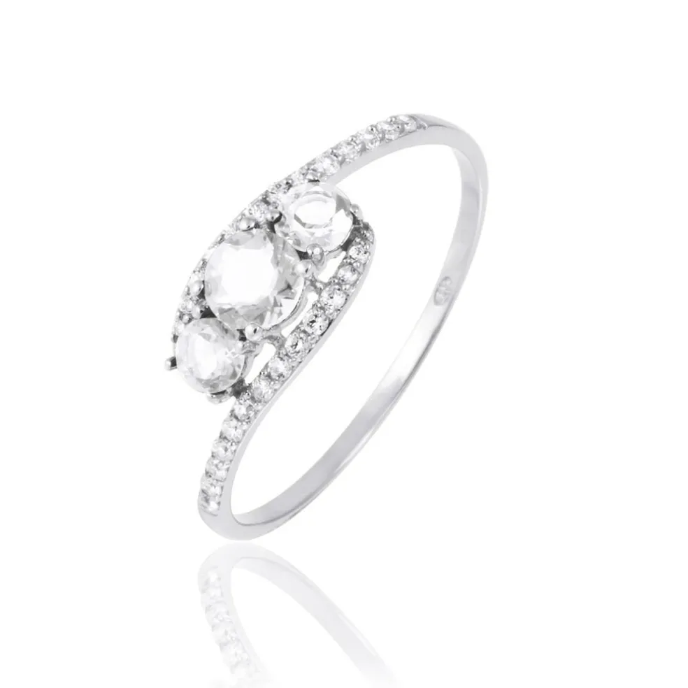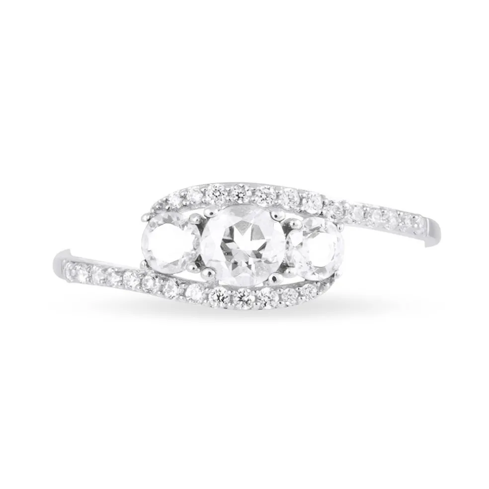 Bague Or Blanc 375/1000 Trilogie Oxydes De Zirconium Blancs 1.104ct Sertis 4 Griffes