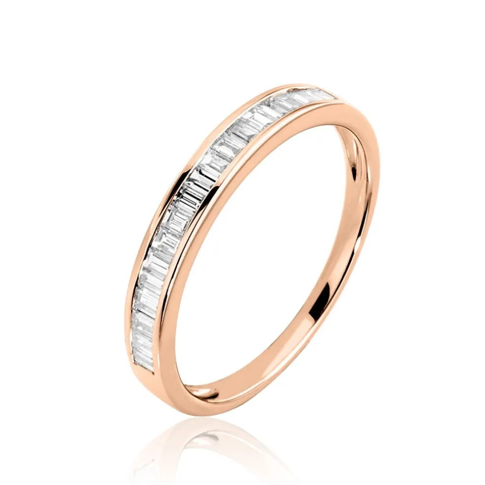 Bague Or Rose 375/1000 Anneau Simple Diamants Baguette