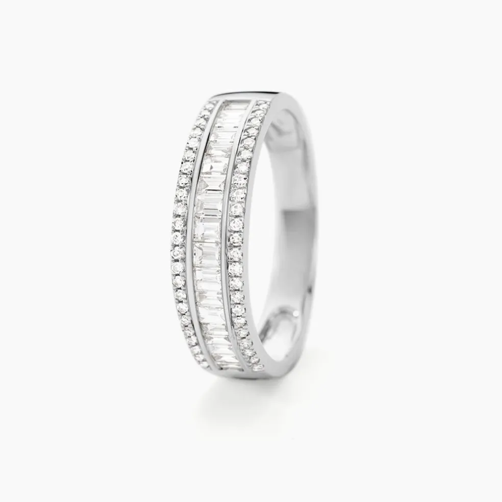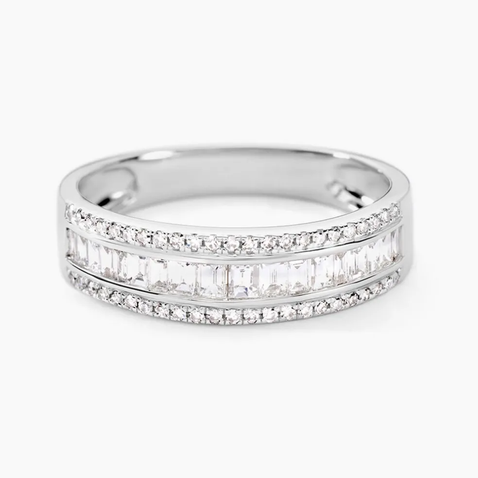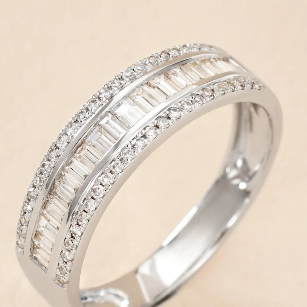 Bague Or Blanc 750/1000 Pm Diamants Baguettes 0.40cts Et Ronds