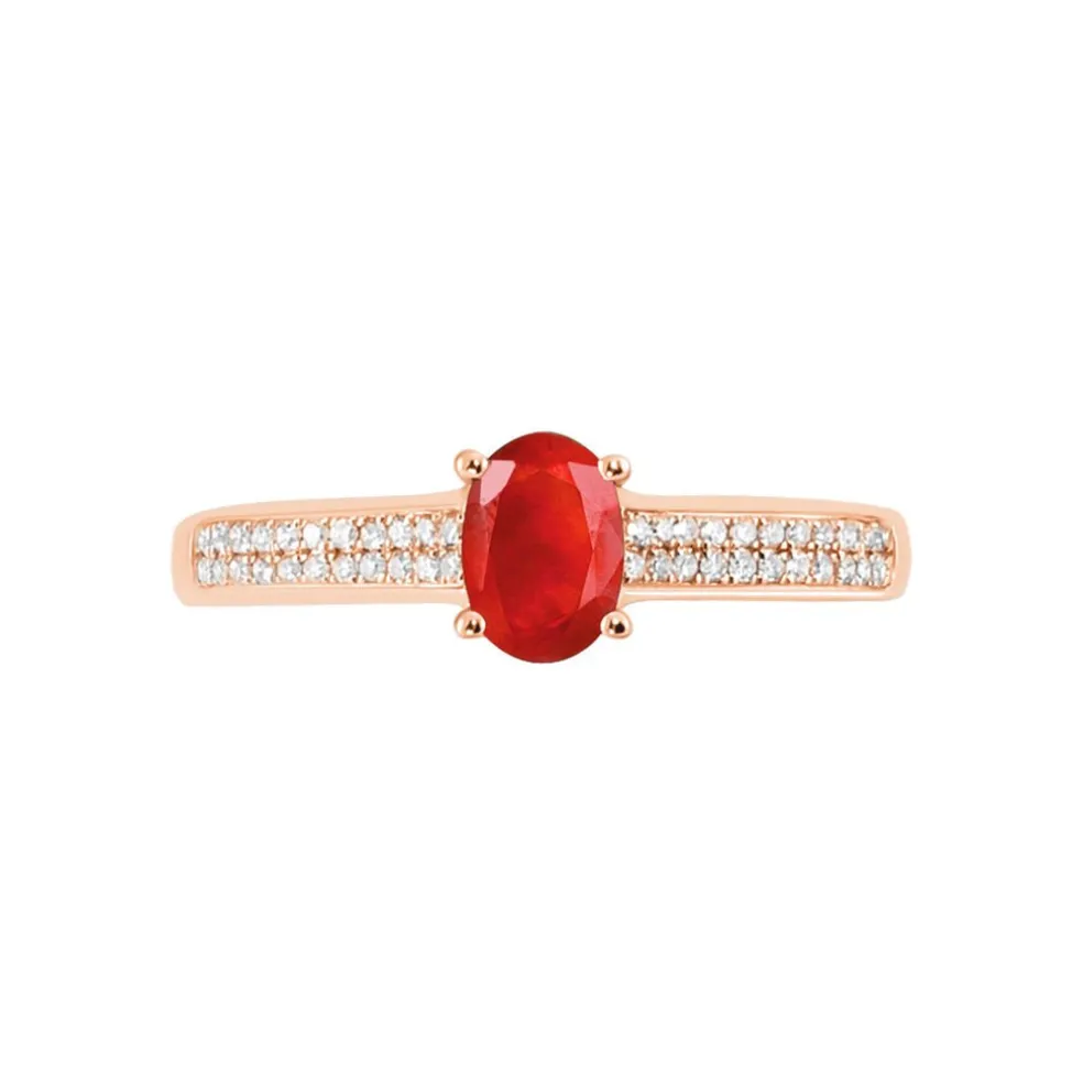 Bague Or Rose 375/1000 Rubis Oval Accompagne Diamants Pm