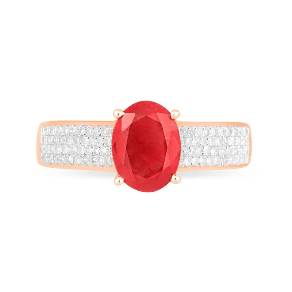 Bague Or Rose 750/1000 Rubis Ovale Accompagne Diamants Gm