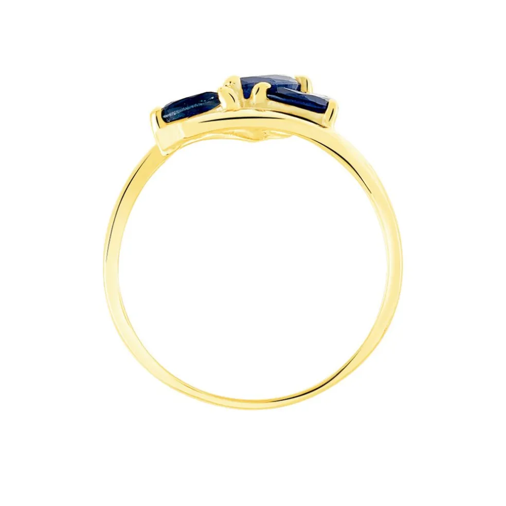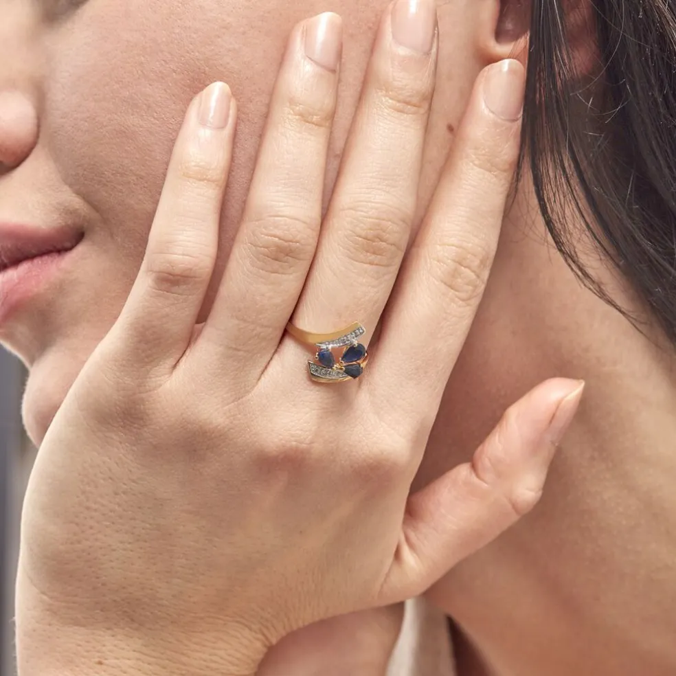 Bague Or Jaune 375/1000 3 Saphirs Poire Et Pavage Diamants