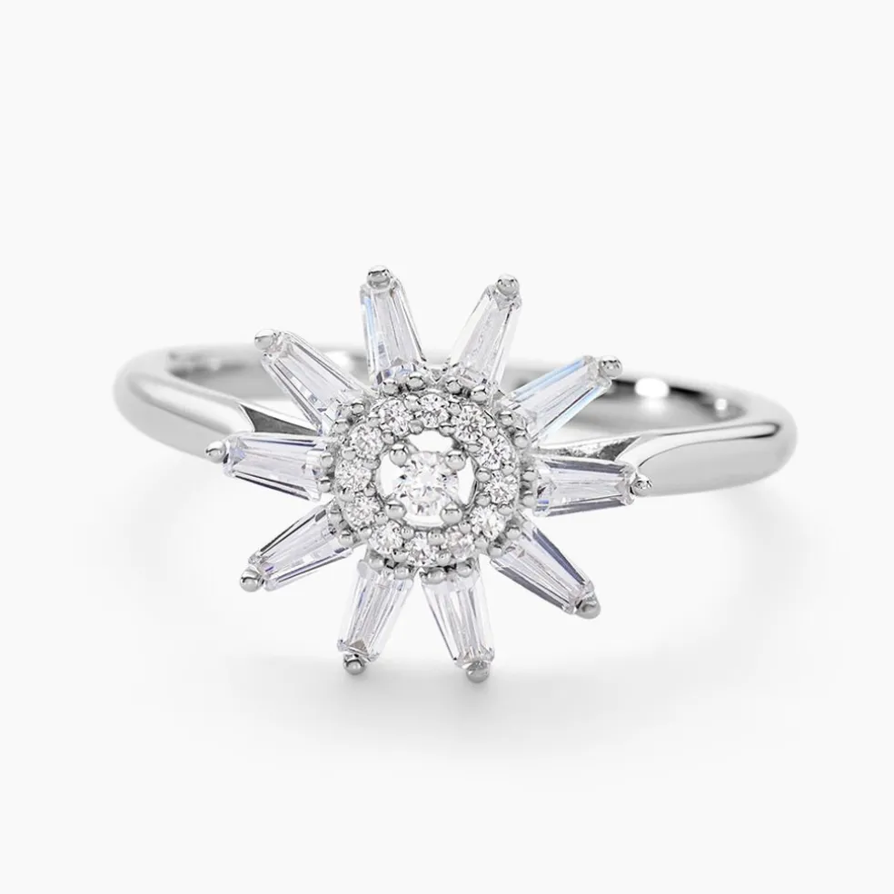 Bague Argent Blanc 925/1000 Fleur Pavage Oxydes De Zirconium