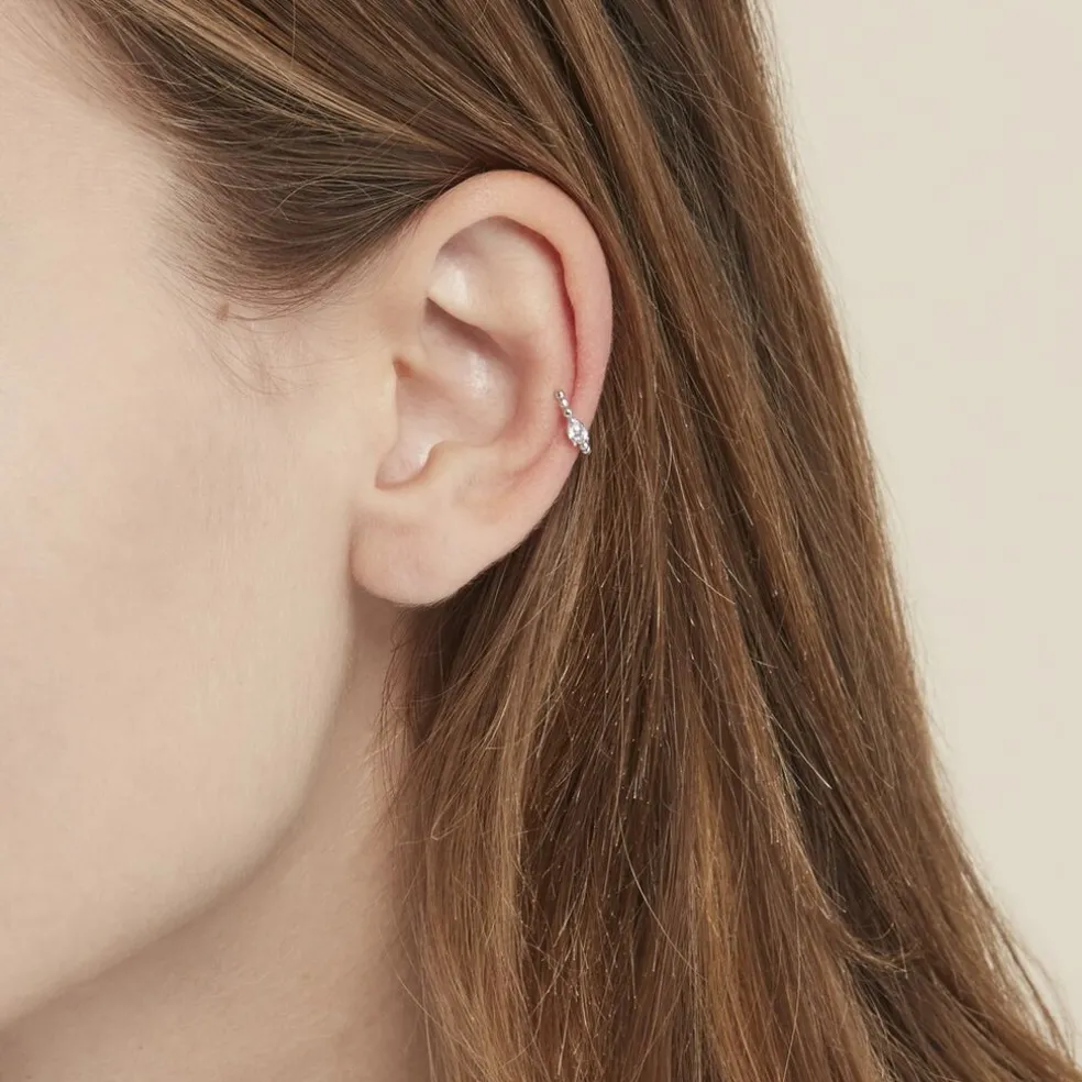 Bague D’hélix Unitaire Argent 925/1000 Perlé Oxydes De Zirconium Forme Goutte Sertis Griffes Diamètre 5mm