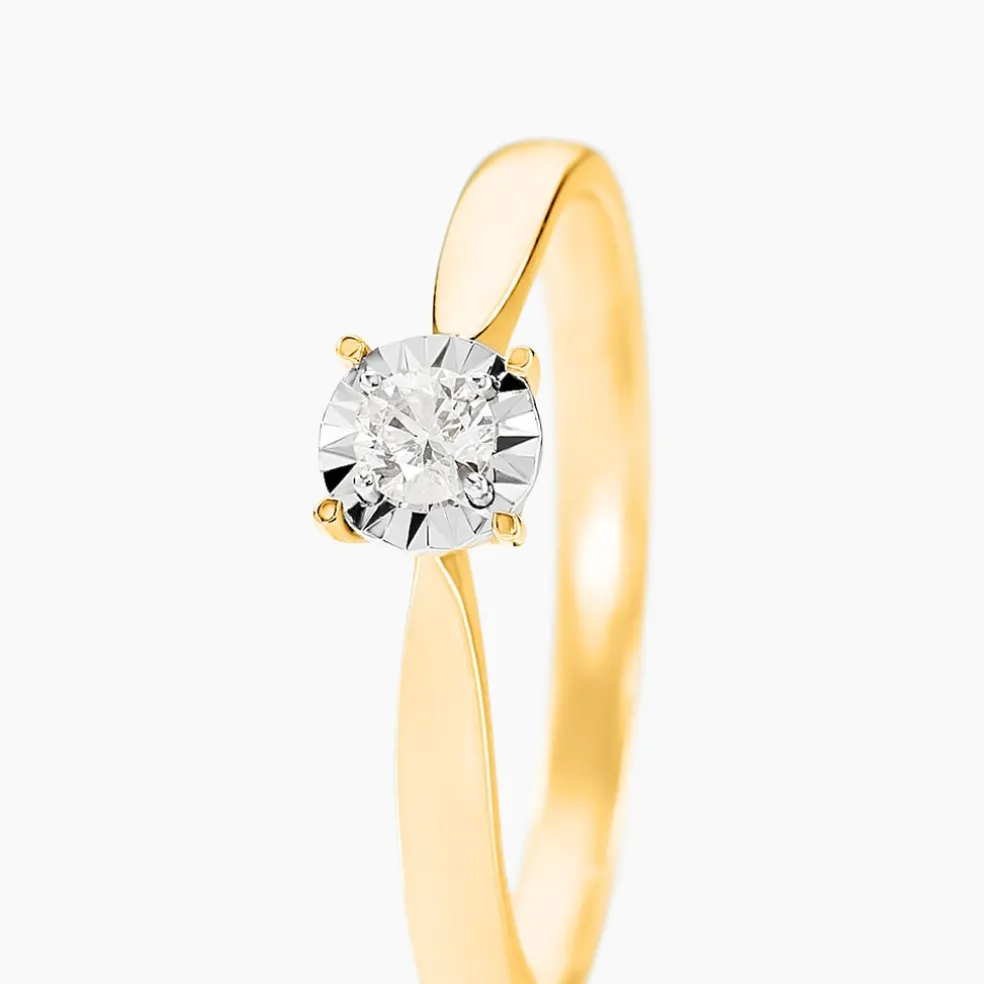 Solitaire Or Jaune 375/1000 Serti Illusion Diamant 0.11cts