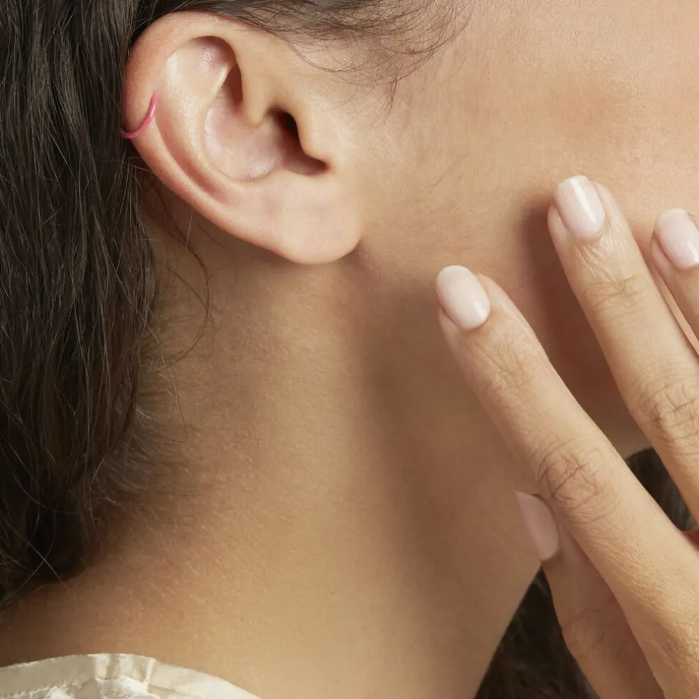 Bague D’oreille Unitaire Argent Blanc 925/1000 Anneau Email Rose