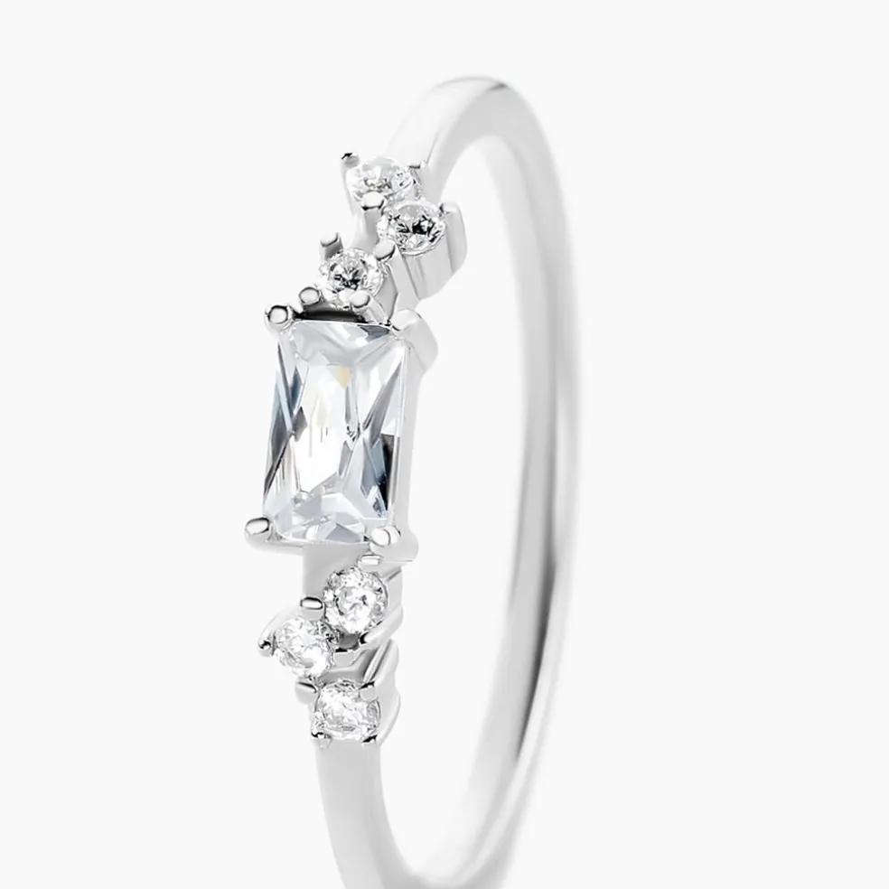 Bague Argent Blanc 925/1000 Oxyde De Zirconium Taille Baguette Accompagne Oxydes