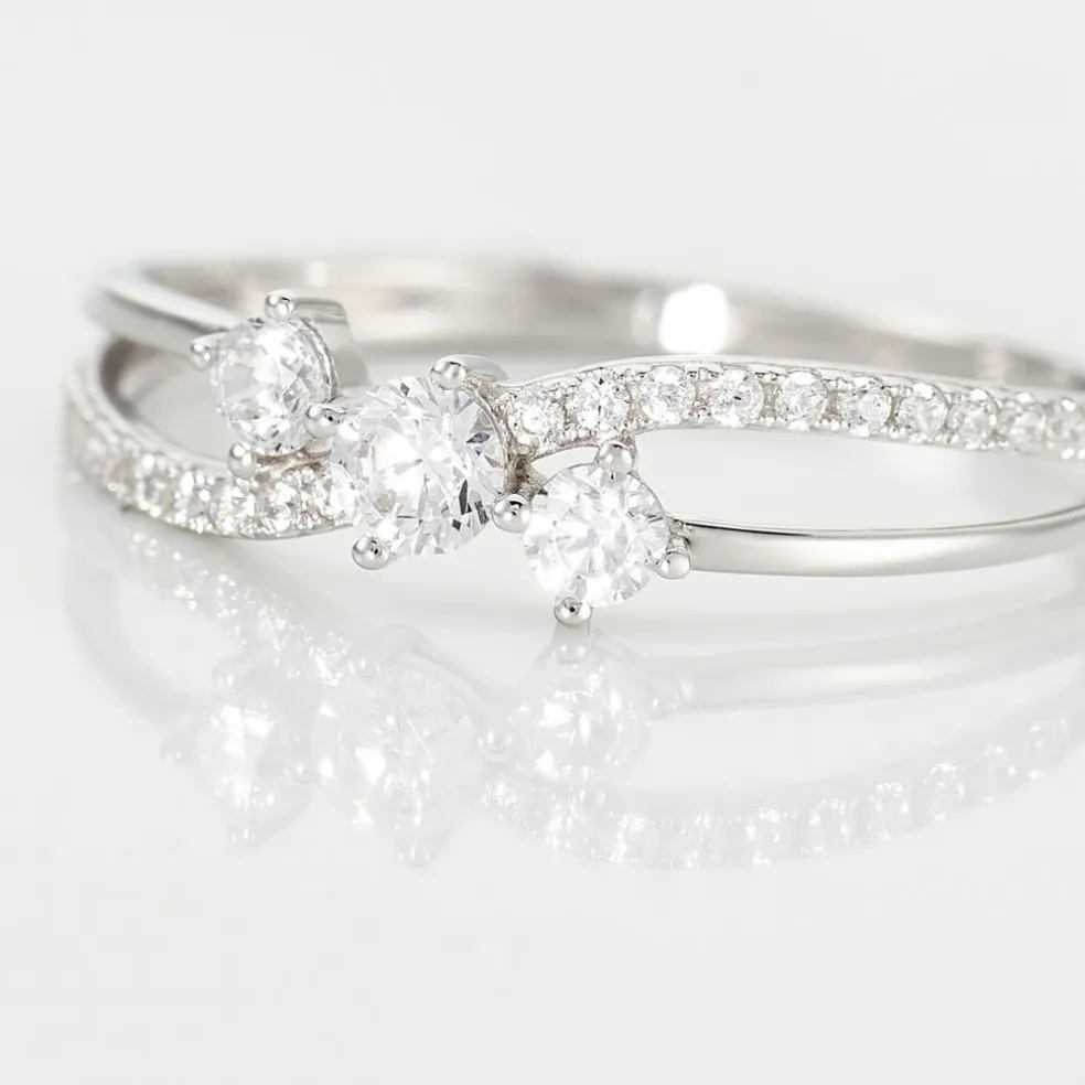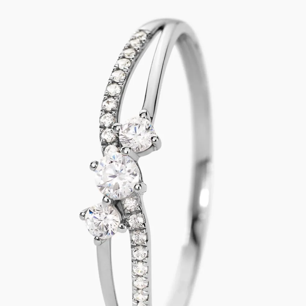 Bague Or Blanc 375/1000 Trilogie Oxydes De Zirconium Corps De Bague Accompagne Oxydes De Zirconium