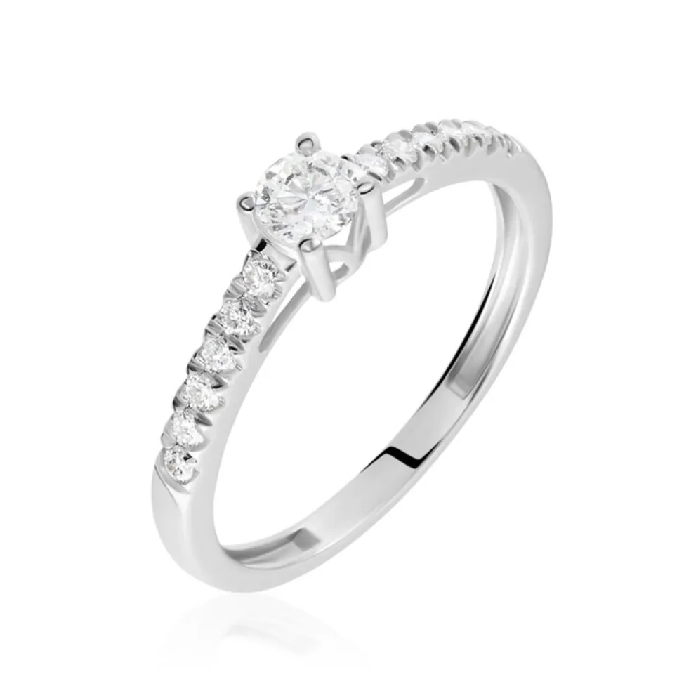 Solitaire Or Blanc 750/1000 Diamant 0.31cts Accompagne Diamants