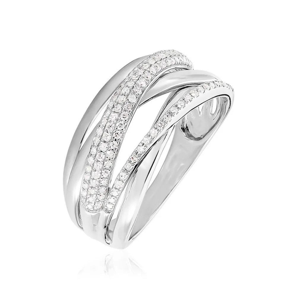 Bague Or Blanc 375/1000 Brides Croisees Et Pavages Diamants