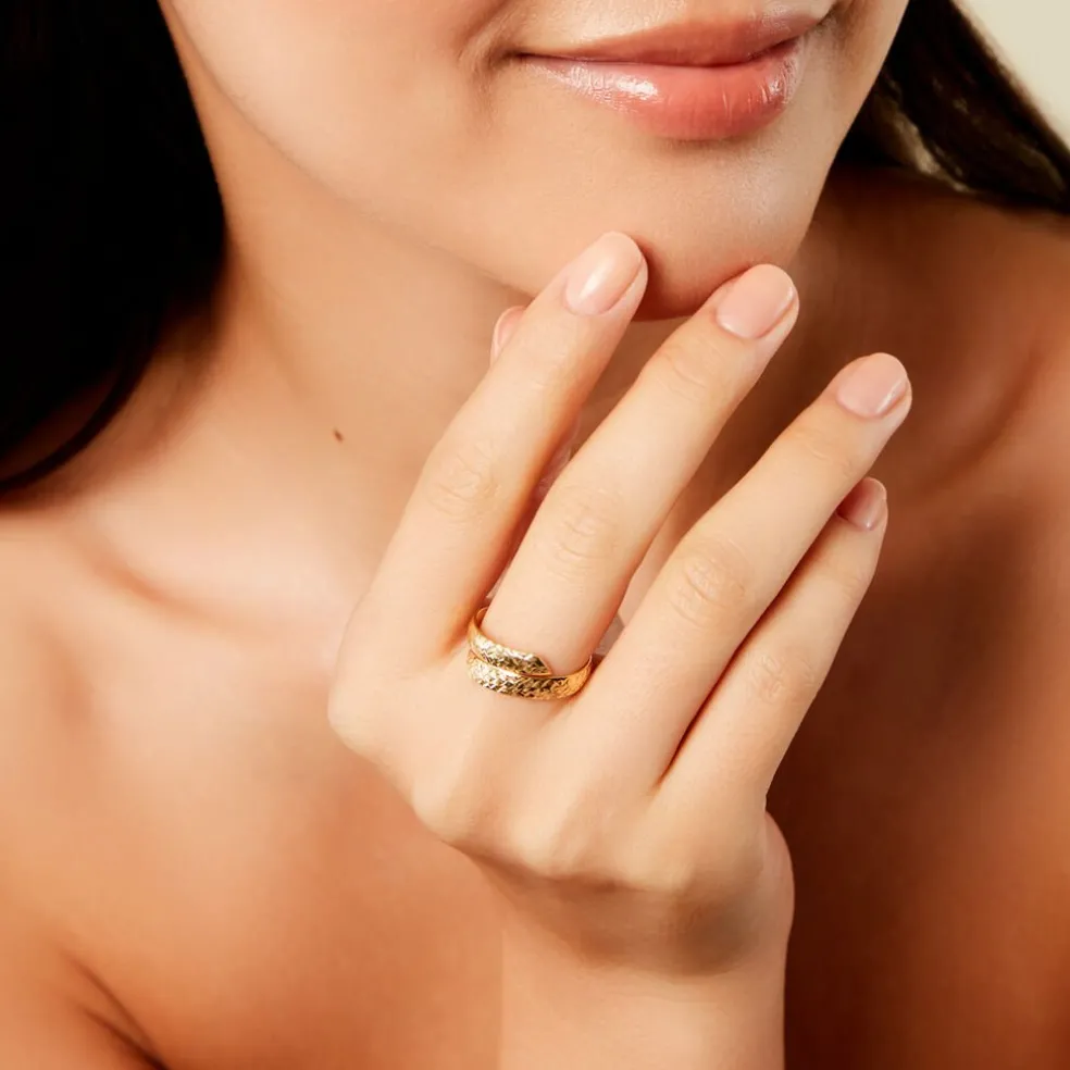 Bague Or Jaune 750/1000 Effet Martele Croise