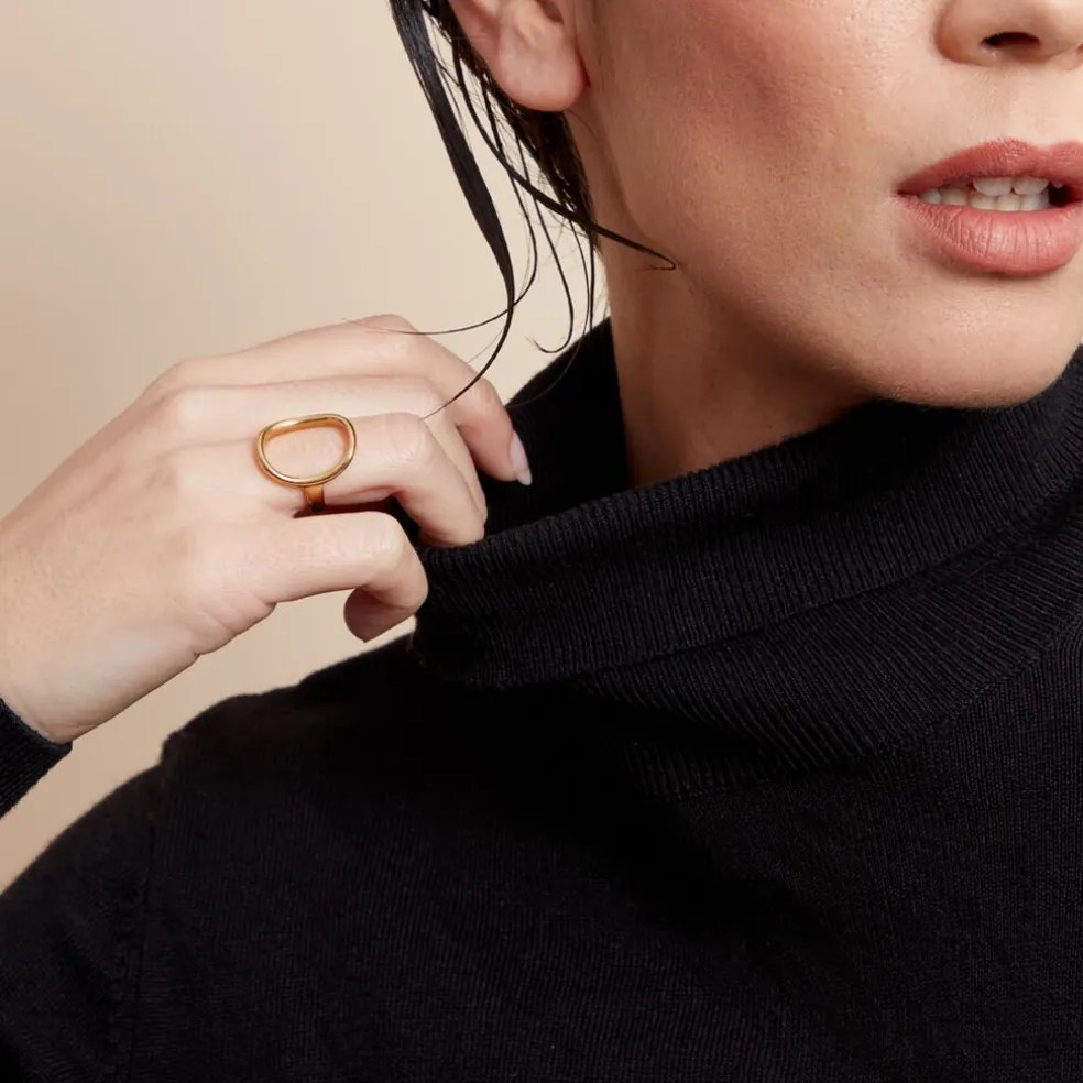 Bague Acier Inoxydable Jaune Forme Ovale Organique