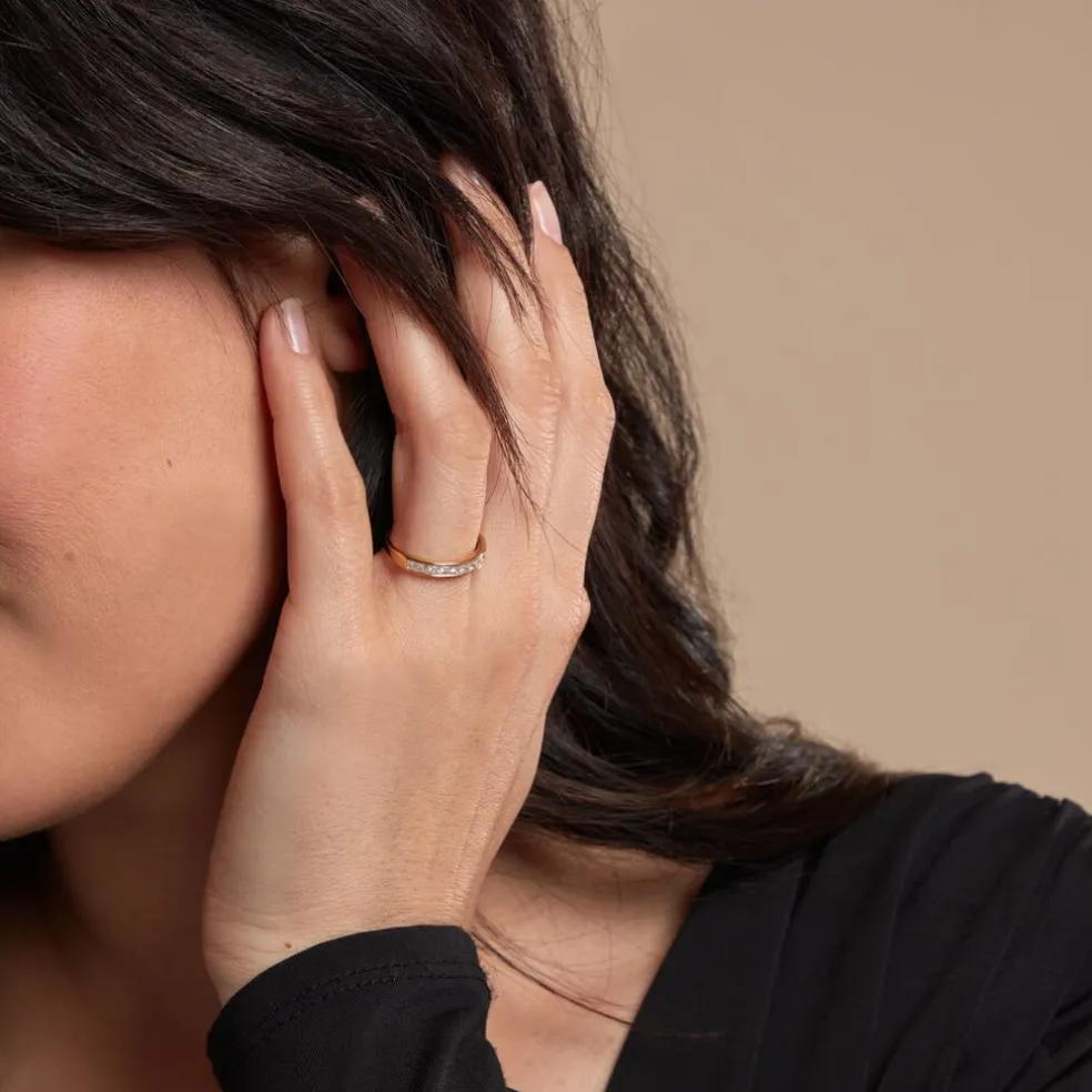 Demi Alliance Or Jaune 375/1000 Oxydes De Zirconium Carre Serti Rail