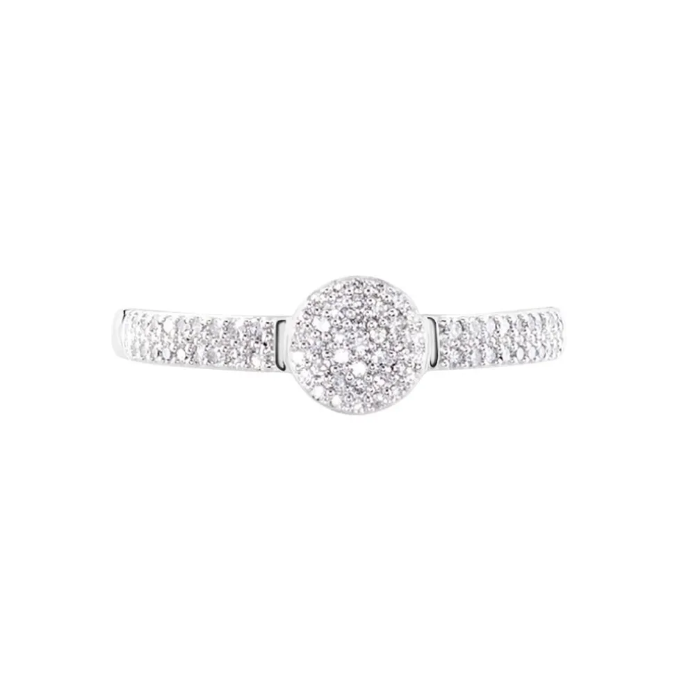 Bague Or Blanc 375/1000 Multipierre Accompagne Rond Pavage Diamants