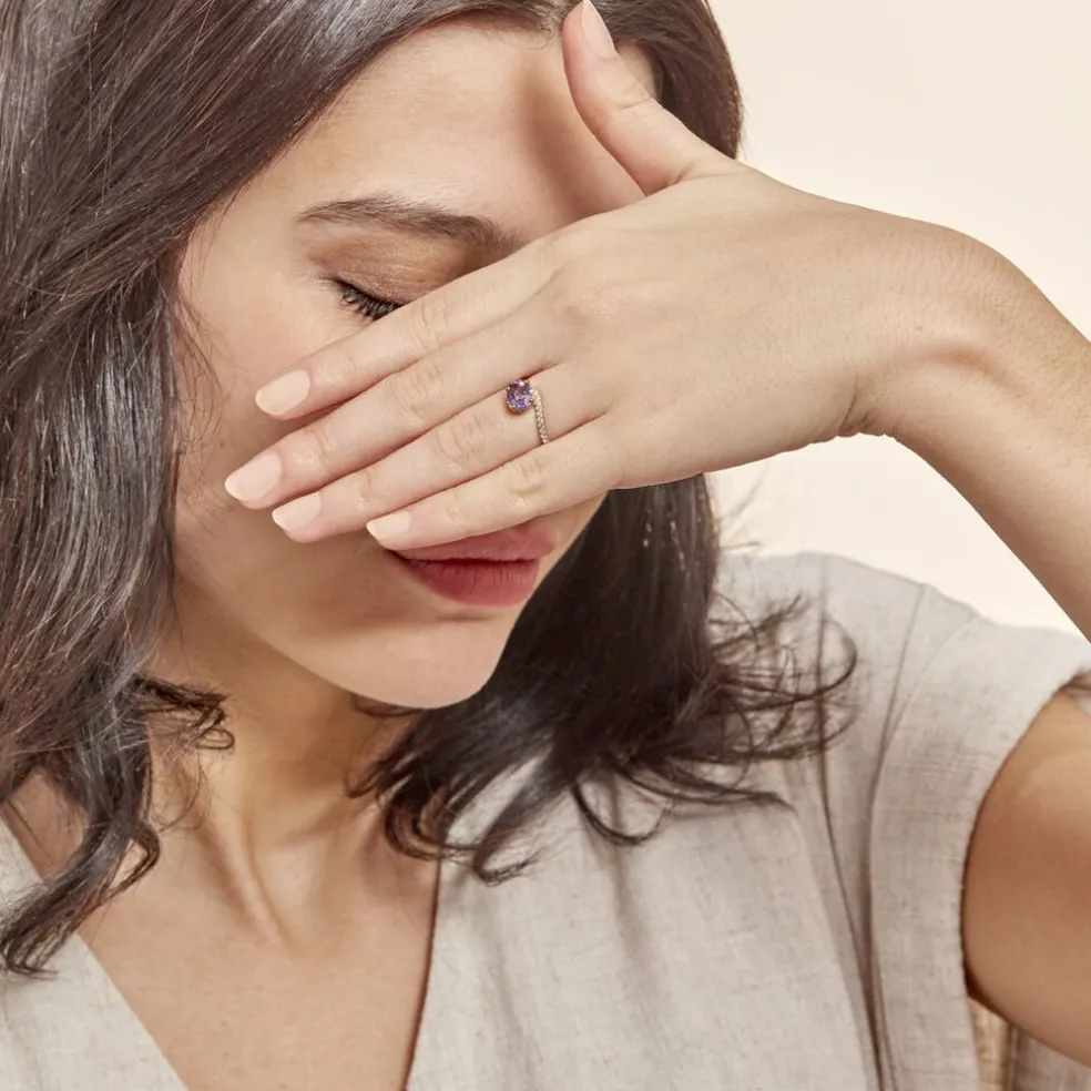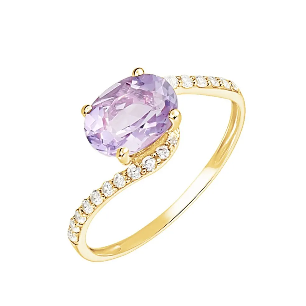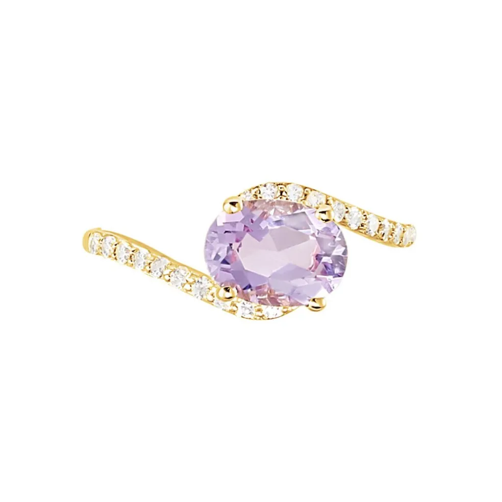 Bague Or Jaune 375/1000 Amethyste Centrale Et Oxydes De Zirconium
