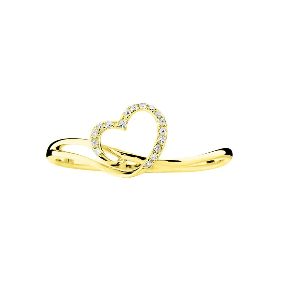 Bague Or Jaune 375/1000 Coeur Ajoure Diamants