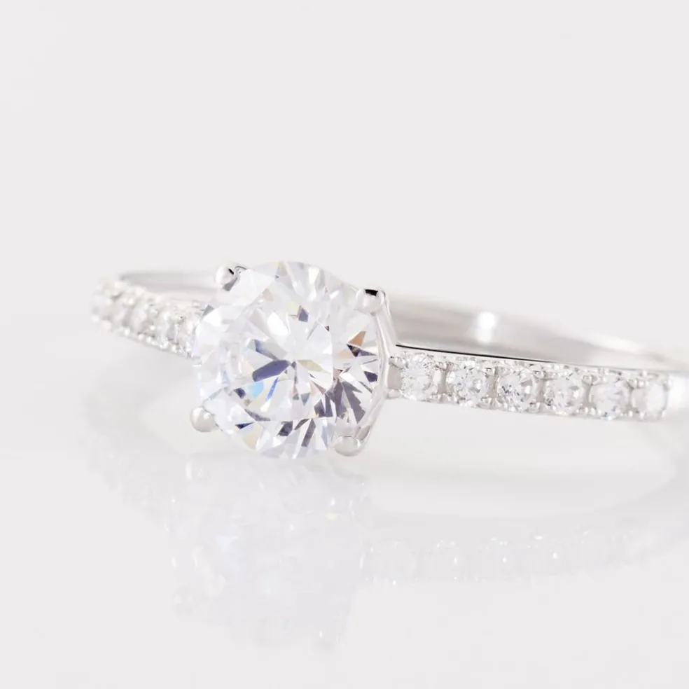 Bague Or Blanc 375/1000 Oxyde De Zirconium Central Accompagne D’oxydes De Zirconium