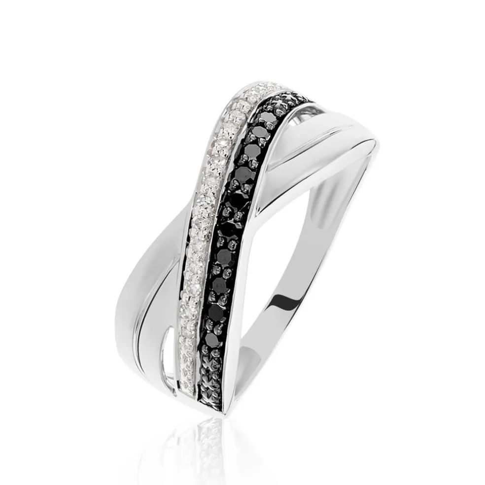 Bague Or Blanc 375/1000 Pavage Diamants Blancs Et Diamants Noirs