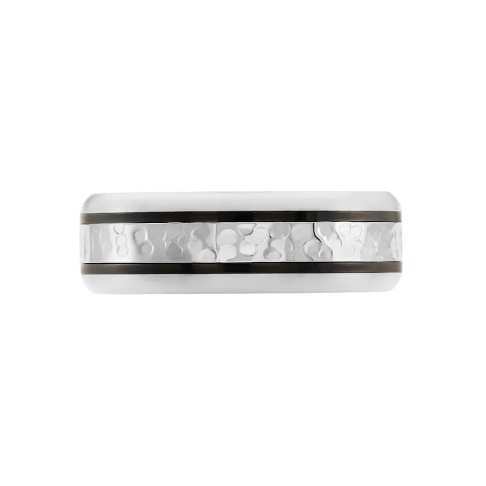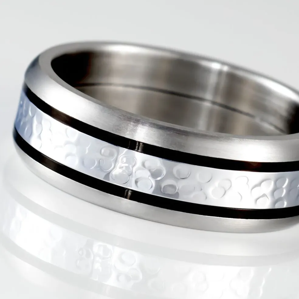 Bague Acier Et Cable Noir