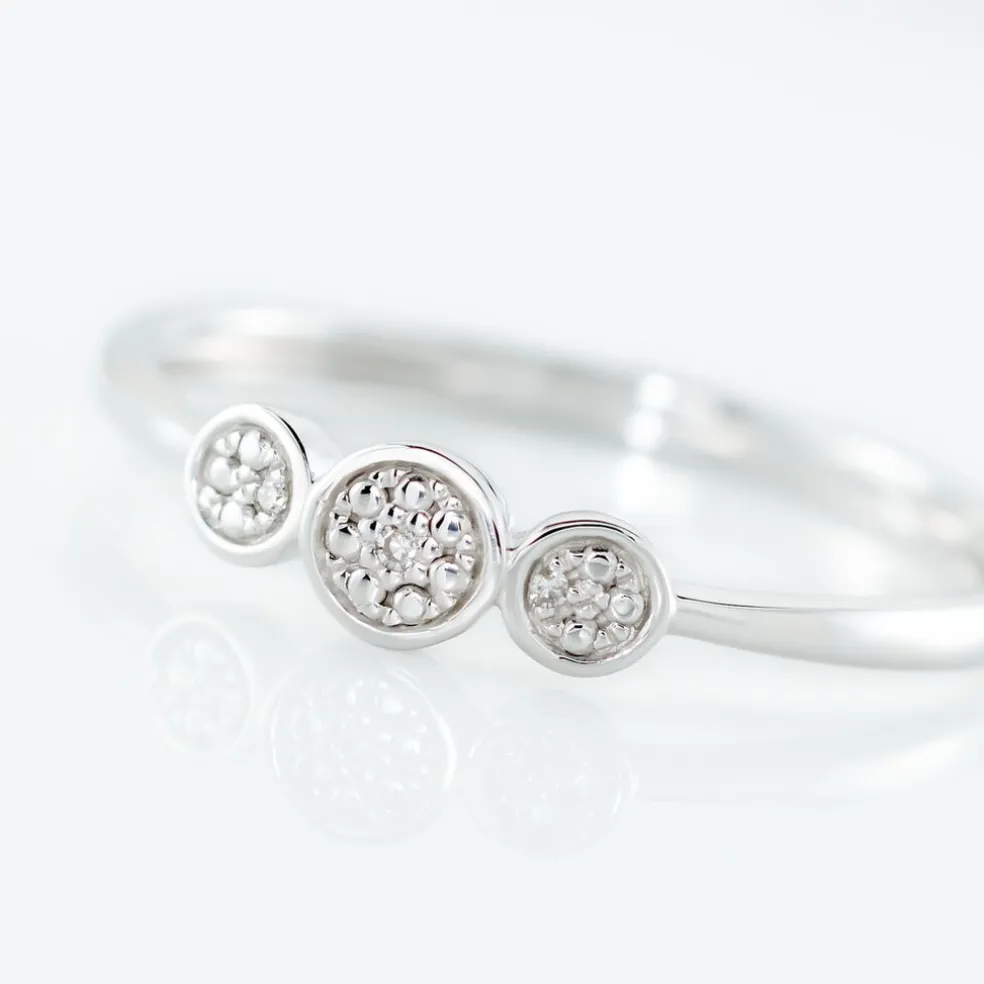 Bague Or Blanc 375/1000 3 Ronds Pavage Diamants