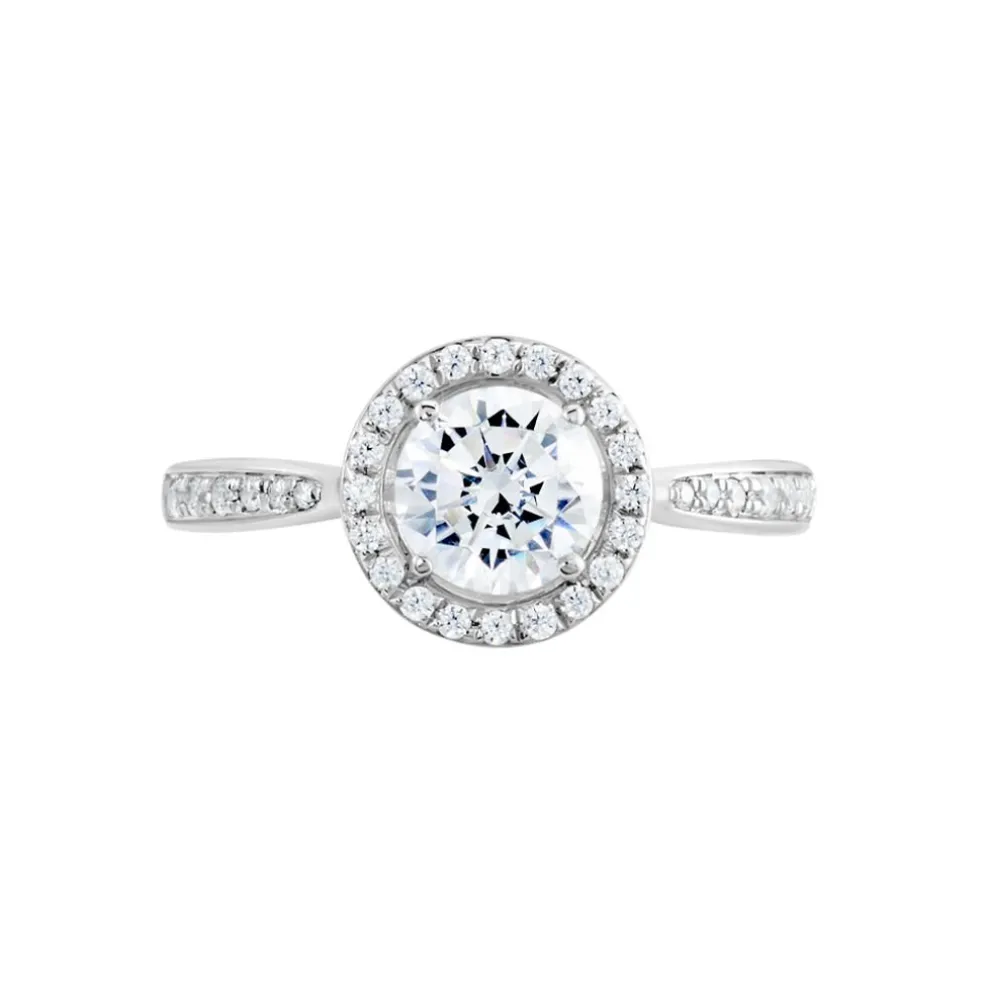 Bague Or Blanc 375/1000 Oxyde De Zirconium Serti Griffes 1.43cts Entourage