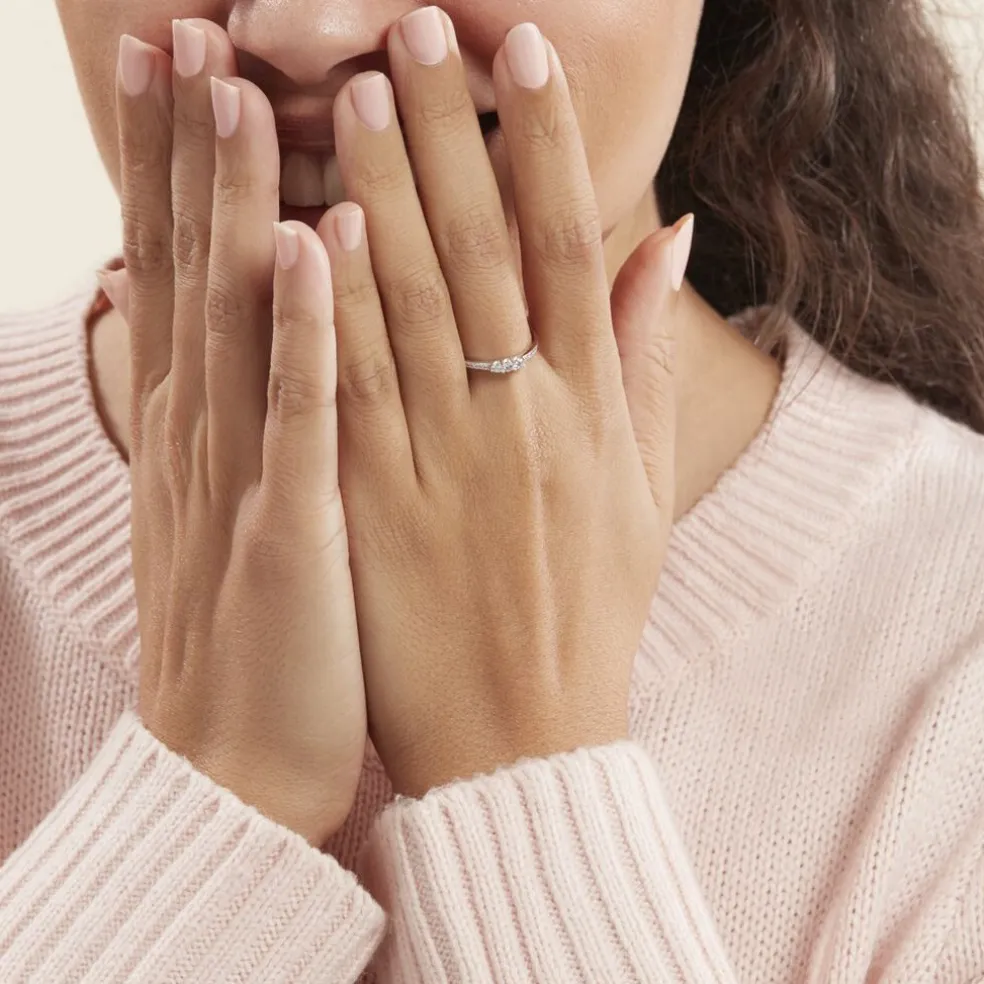 Bague Or Blanc 375/1000 Trilogie Diamant Central 0.05ct Et Diamants Accompagnée 0.07cts