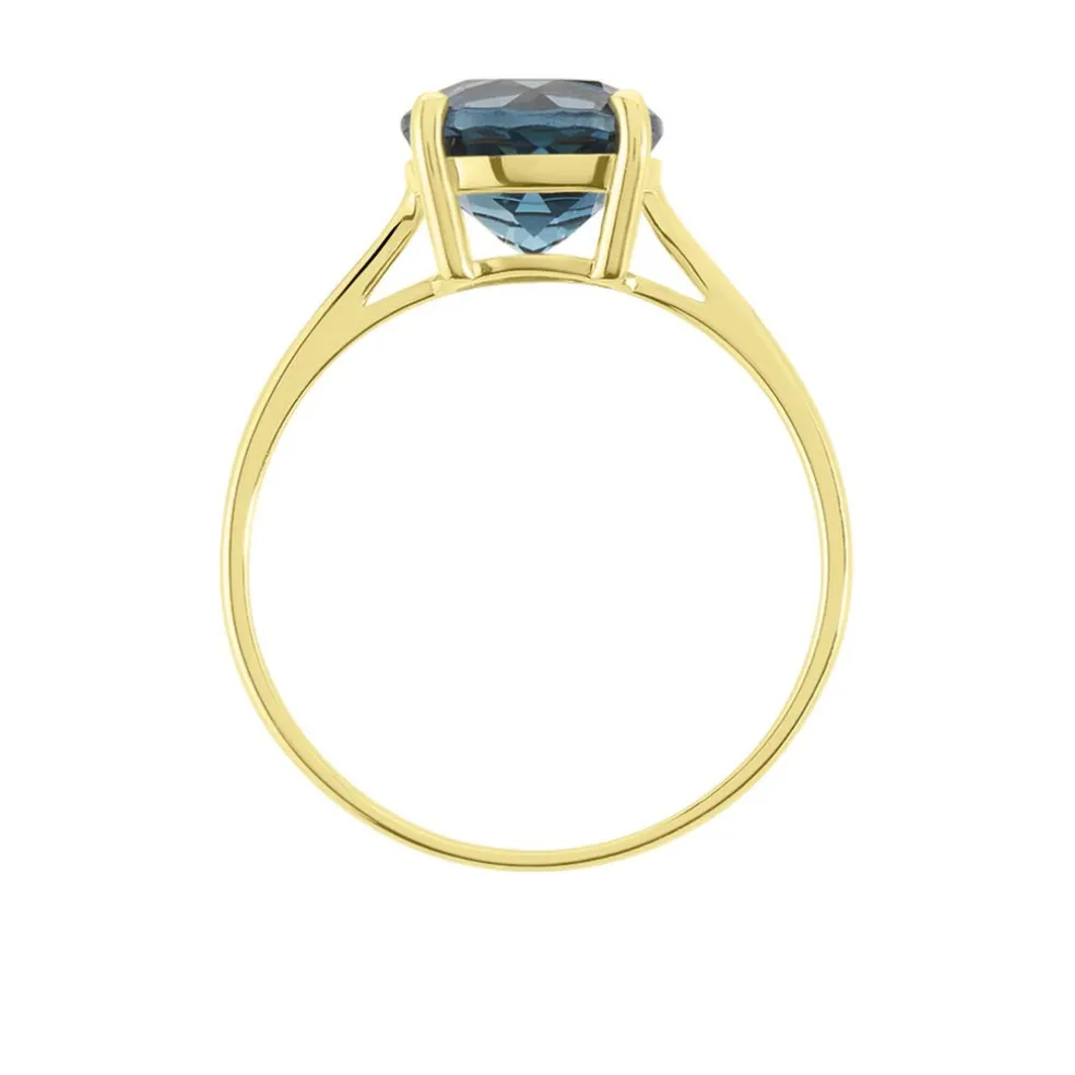 Bague Or Jaune 375/1000 Topaze Bleu London 2.6 Cts Serti Griffes