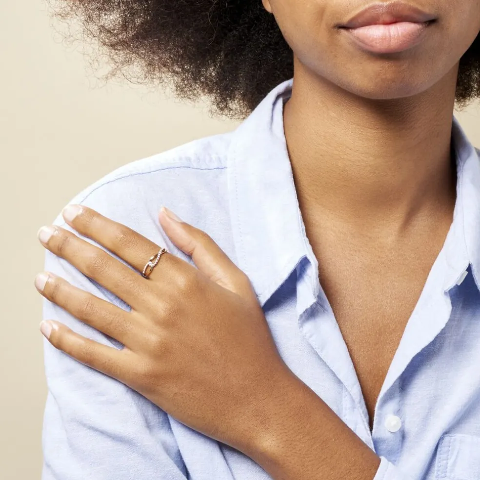 Bague Or Jaune 375/1000 Entrelaces Pavage Diamants